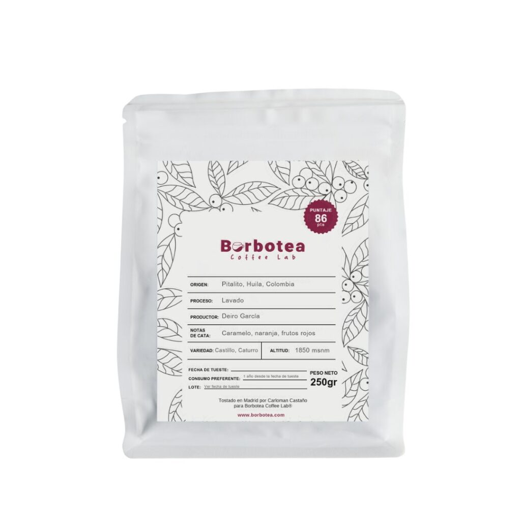 Café colombiano proveniente del municipio de Pitalito en el Huila, sur de Colombia, cultivado a 1850 metros de altitud.